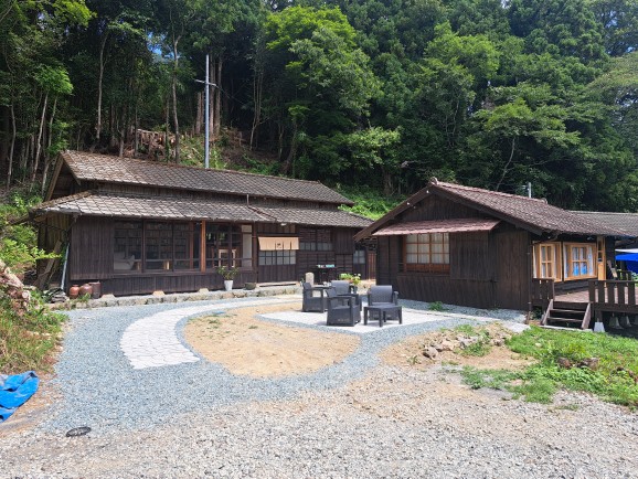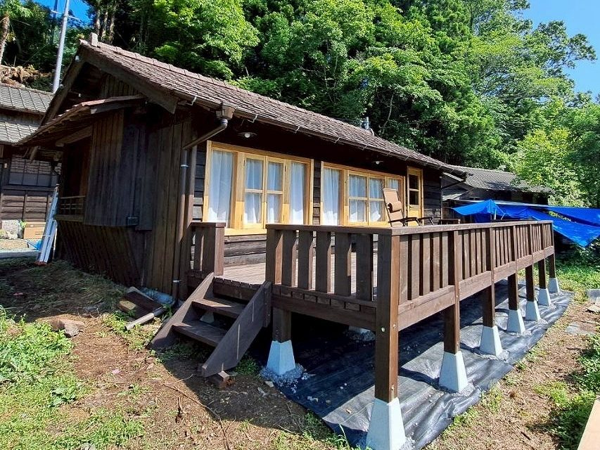 一棟貸しの古民家宿です。最大5名までお泊りいただけます。静かな山の中で過ごす一晩はとても静かで満天の星が楽しめます。明け方の朝もやに包まれた山の景色は幻想的。書店の本も夜通しお楽しみいただけます。